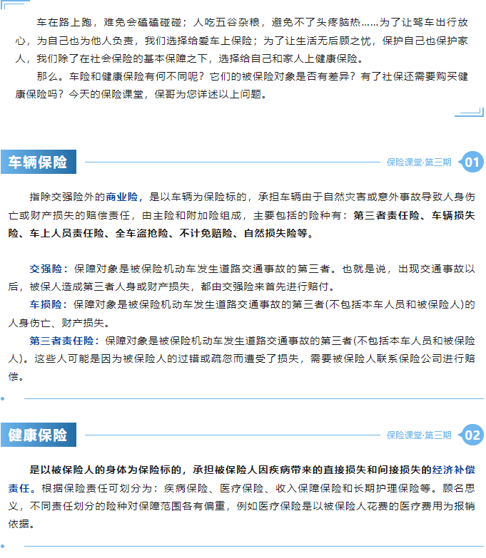 保险课堂,车险和健康险有什么区别?它们都值得投保吗?
